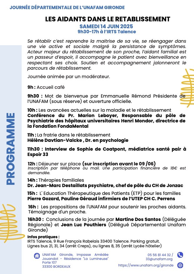 Journée départementale « Les aidants dans le rétablissement » https://www.unafam.org/gironde/actualites/journee-departementale-0
