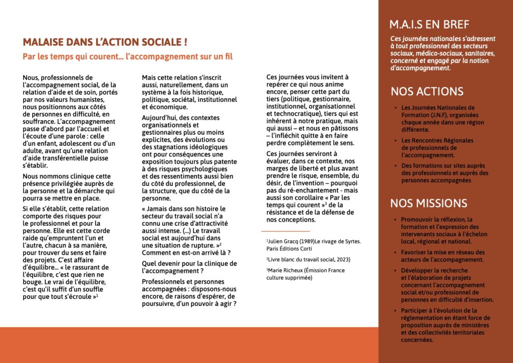 Thématique : Malaise dans l’action sociale ! Par les temps qui courent … l’accompagnement sur un fil.